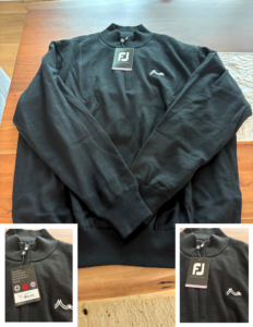 Description: This is an XL Footjoy golf sweater with a waterproof liner. Ideal for Spring, Fall, and Winter golf to stay warm and dry on the course.