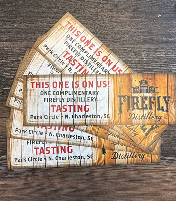 Enjoy 4 tasting tickets to Firefly Distillery in Park Circle, where “good times with good friends are had by all.” Each tasting experience includes a guided flight of handcrafted spirits—including their famous sweet tea vodka and a variety of whiskeys, rums, and moonshines. making this the perfect outing for a group of friends, date night, or a fun afternoon adventure in Park Circle.